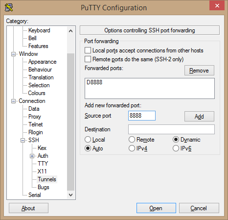 In Putty, create a connection to your favorite SSH server that has unfettered access, or at least the access you need.